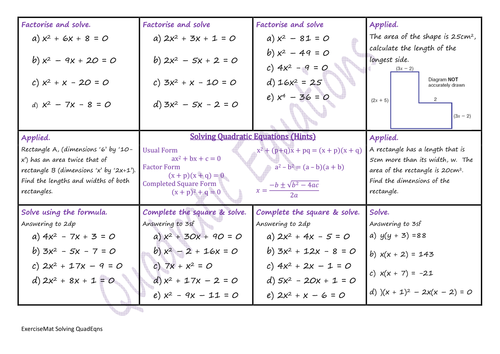 Solving Quadratic Equations Revision Teaching Resources